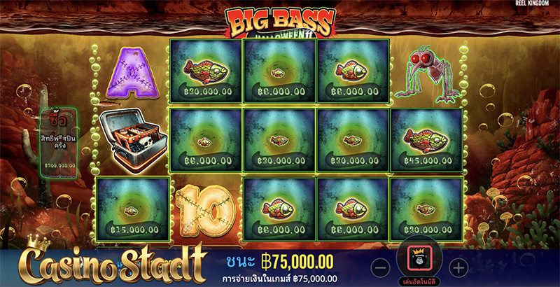 Big Bass Halloween 2 บิ๊กบาส ฮาโลวีน 2 มาในตารางสล็อตขนาด 5 × 3 และเพย์ไลน์ 10 เส้น