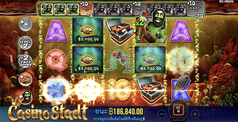 • สัญลักษณ์สแคทเตอร์จำนวน 3 ตัว ให้สิทธิ์ฟรีสปิน 10 ครั้ง