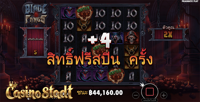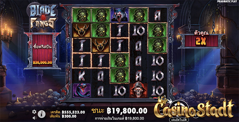 เกมสล็อตธีมสยองขวัญ Blade & Fangs เบลด & แฟงส์ จากค่าย Pragmatic Play มาในตารางสล็อตขนาด 6 × 5 โดยแบ่งตารางสล็อตเป็นด้านบนและล่าง แต่ละตารางจะมีเพย์ไลน์เป็นของตัวเอง ลุ้นการปรากฏตัวพร้อมกันของสัญลักษณ์ตัวคูณขนาด ×1 และ ×2 ที่จะทำให้รีสปินถูกเปิดใช้งาน! ห้ามพลาด! เพียงได้สัญลักษณ์ Scatter พร้อมกัน 6 ตัวรับไปเลยเงินรางวัล ×500 เท่าของเงินเดิมพัน!