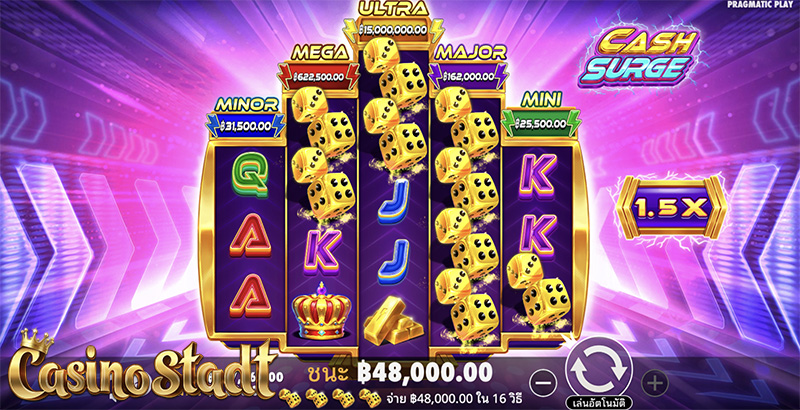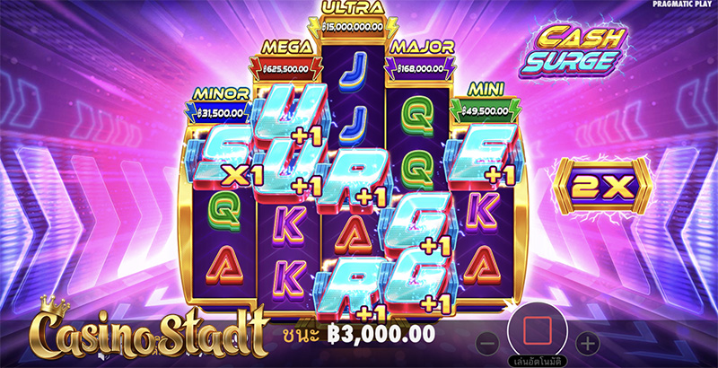 ลุ้นรางวัลใหญ่ในทุกการสปิน! ในเกมสล็อต Cash Surge แคชเซิร์จ จาก Pragmatic Play ตามหาสัญลักษณ์สายฟ้าฟาดในเกมหลักเพื่อลุ้นรางวัลแจ็กพอตมินิ ไมเนอร์ เมเจอร์ เมกะ และอัลตร้า! สัญลักษณ์สแคทเตอร์บนรีลจะช่วยเพิ่มตัวคูณสะสมและเปิดใช้งานรอบฟรีสปิน สัญลักษณ์แจ็กพอตในรอบฟรีสปินจะเปิดใช้งานวงล้อเพื่อสุ่มรับรางวัลแจ็กพอตที่มีขนาดสูงสุดถึง 5,000 เท่า! พร้อมสัมผัสความมันส์กันหรือยังคะ!?