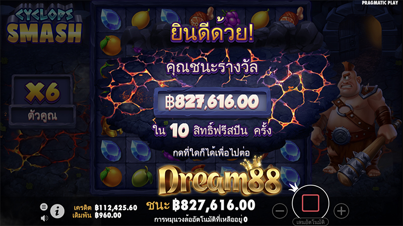 เพื่อนๆสามารถทดลองเล่นเกมสล็อต Cyclops Smash™ ไซคลอปส์สแมช ที่มาพร้อมฟีเจอร์แปลกใหม่อย่างฟีเจอร์สแมช กันได้แล้วที่นี่ นอกจากนี้ยังสามารถ ทดลองเล่นเกมสล็อตค่ายดัง อื่นๆกันได้ฟรี หรือไม่รอช้าเดิมพันจริงกันได้เลยที่ เว็บไซต์คาสิโนออนไลน์ชั้นนำ ที่ dream88 คัดสรรมาให้คุณ ไม่ว่าจะเป็นเกมแจ็กพอต เกมยิงปลา เกมบิงโก คาสิโนสด ซิกโบ บาคาร่า รูเล็ต โป๊กเกอร์ แบล็คแจ็ค และอื่นๆอีกเพียบ!!