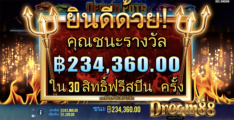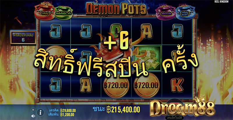 Demon Pots™ เดมอนพอทส์ มีอัตราการจ่ายเงินคืนแก่ผู้เล่น หรือ ค่า RTP อยู่ที่ 96.01% และ ความผันผวนสูง ผู้โชคดีอาจได้รับรางวัลสูงสุด 6,000 เท่าของเงินเดิมพัน