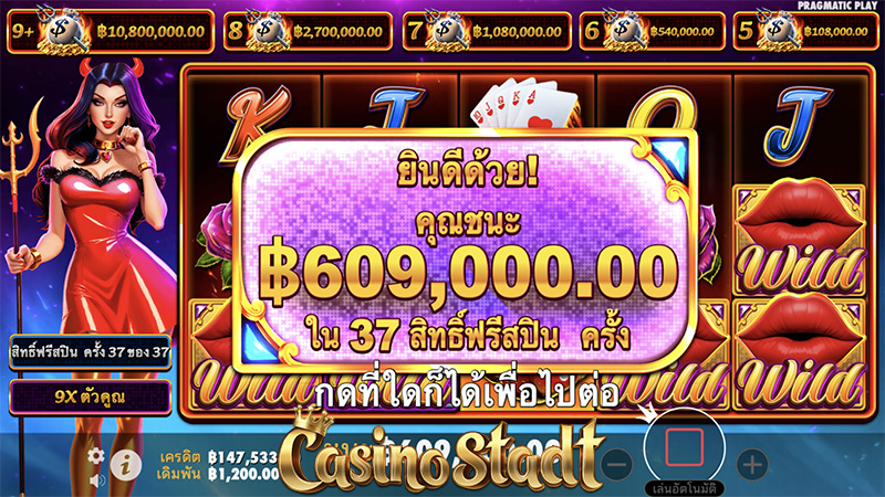 ทดลองเล่นเกมสล็อตแนวแฟนตาซี Devilicious เดวิลลิเชียส เกมสล็อตพร้อมฟีเจอร์น่าตื่นเต้นมากมายกันได้เลยที่นี่! และที่เว็บไซต์ Casino Stadt เรามีเกมสล็อตมากมายมาแนะนำและให้ทดลองเล่นก่อนเดิมพันจริงกันได้ฟรีๆ! หรือไม่รอช้าเข้าไปเดิมพันจริงกันได้เลยที่ เว็บไซต์คาสิโนออนไลน์ชั้นนำ ของประเทศไทย ที่ Casino Stadt คัดสรรมาให้คุณ นอกจากยังมีเกมฮิตอื่นๆอีกเพียบให้คุณได้ร่วมสนุก ไม่ว่าจะเป็นเกมแจ็กพอต เกมยิงปลา เกมบิงโก คาสิโนสด ซิกโบ บาคาร่า รูเล็ต โป๊กเกอร์ แบล็คแจ็ค และอื่นๆอีกมากมาย!