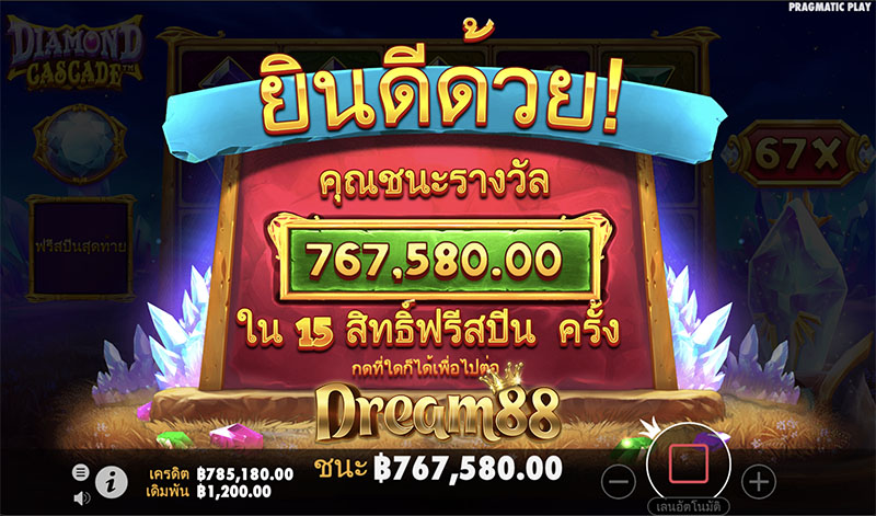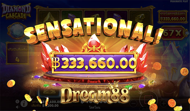 Diamond Cascade™ เกมธีมอัญมณี จากค่าย Pragmatic Play ที่อาจจะดูเหมือนเกมเพชรทั่วๆไป แต่แตกต่างอย่างแน่นอนด้วย ฟีเจอร์ลบสีและร่วงหล่น ที่ไม่เหมือนใคร แถมยังมีโอกาสได้รับรางวัลสูงสุดถึง 8,000x เท่าของเงินเดิมพันอีกด้วย สามารถเล่น Diamond Cascade™ กันได้เพลินๆได้ก่อนใครที่นี่ นอกจากนี้เรายังมีเกมอื่นๆอีกมากมายให้คุณได้ทดลองก่อนเดิมพันจริง ทดลองเล่นเกมสล็อตค่ายดัง หรือเดิมพันจริงกันได้เลยเพียงสมัครสมาชิกกับ เว็บไซต์คาสิโนออนไลน์ชั้นนำ ที่ dream88 คัดสรรมาให้คุณ