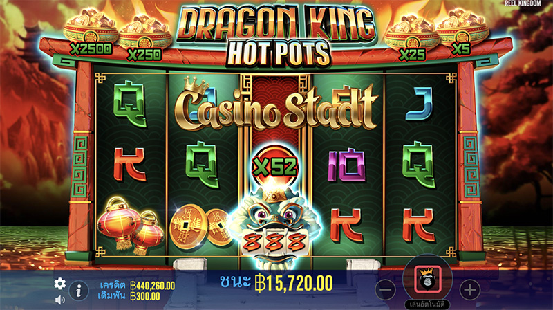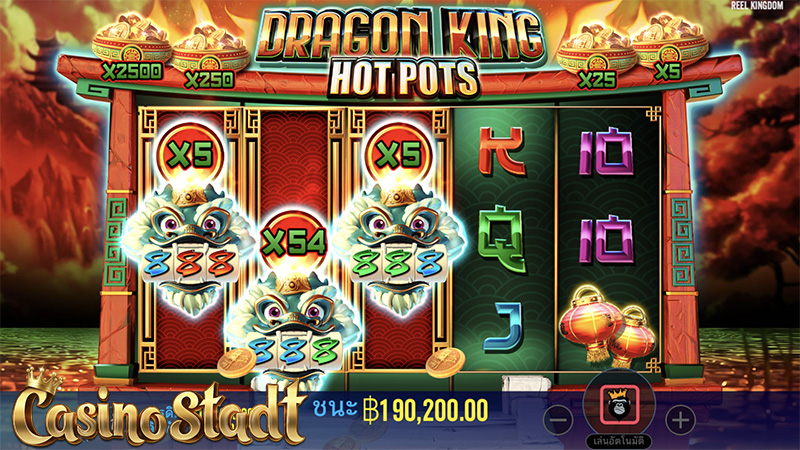 เกมสล็อต Dragon King Hot Pots ดราก้อนคิงฮอทพอท จากค่าย Pragmatic Play เกมสล็อตเล่นง่ายที่มีเพย์ไลน์เพียง 10 เส้น พร้อมเสริฟความโชคดีให้คุณกับหม้อไฟตัวคูณสูงสุดถึง 2500 เท่า และสัญลักษณ์แห่งความโชคดีไม่ว่าจะเป็นเหรียญทอง โคมไฟ และมังกร พร้อมฟีเจอร์โบนัสเครื่องสล็อตมินิที่หลายคนรอคอย!