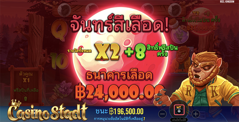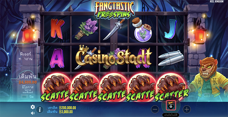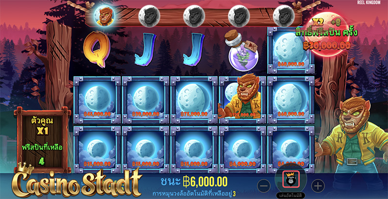 บรู๊ววว หมาป่าเขี้ยวแหลมที่กลายร่างในคืนพระจันทร์เต็มดวงจะนำความร่ำรวยมาให้คุณ!! เกมสล็อต Fangtastic Freespins แฟงแทสติก ฟรีสปิน จากค่าย Pragmatic Play สะสมพระจันทร์เต็มดวงในรอบฟรีสปินเพื่อเปลี่ยนเป็นเงินรางวัลสะสมในธนาคารเลือด! ค้นหามนุษย์หมาป่าให้ครบ 6 ตัวเพื่อรับสิทธิ์ฟรีสปินพิเศษพร้อมตัวคูณพิเศษ!