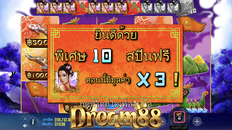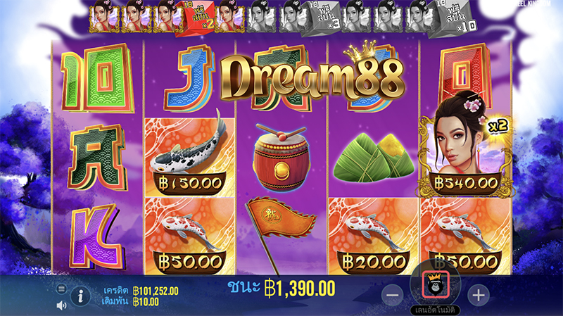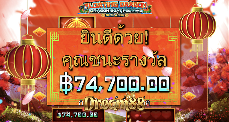 ในเกม Floating Dragon – Dragon Boat Festival ผู้โชคดีสามารถชนะเดิมพันได้สูงสุดถึง 10,000 เท่า นั่นแปลว่า เพียงลงเดิมพันแค่ 10 บาท อาจจะได้กลับบ้านไปถึง 100,000 บาท ก็เป็นได้ สามารถเล่นเกมนี้ได้บนเว็บไซต์คาสิโนออนไลน์ชั้นนำของประเทศไทย ที่ dream88 คัดสรรมาให้คุณ นอกจากยังมีเกมฮิตอื่นๆอีกเพียบให้คุณได้ร่วมสนุก ไม่ว่าจะเป็นเกมแจ็กพอต เกมบิงโก เกมยิงปลา เกมคาสิโนสด บาคาร่า โป๊กเกอร์ เสือมังกร ฯลฯ