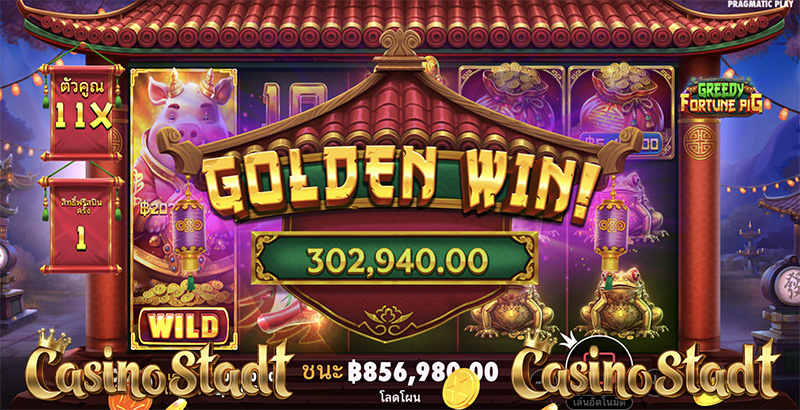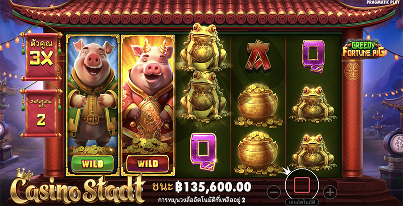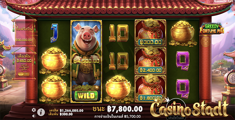 Greedy Fortune Pig กรีดดี้ฟอร์จูนพิก มาในตารางสล็อตขนาด 5 × 3 และเพย์ไลน์ 10 เส้น
