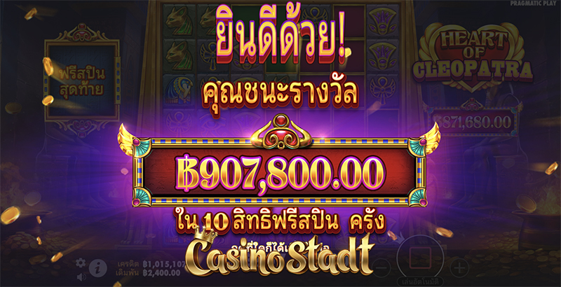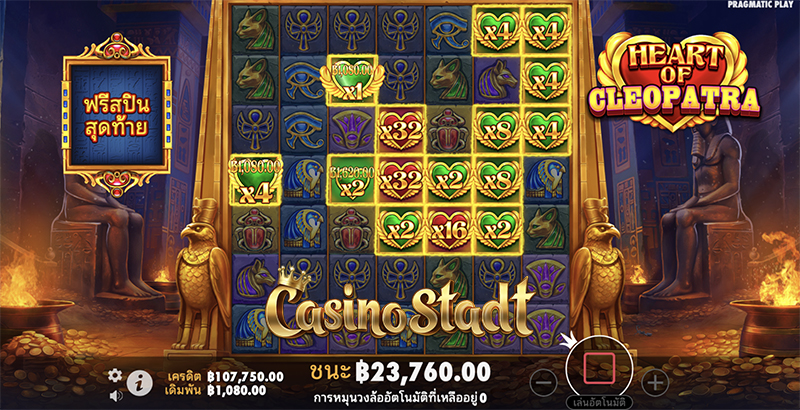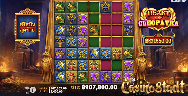 ลุ้นรางวัลสูงสุดถึง ×10,000 เท่าของเงินเดิมพัน ในเกมสล็อตธีมอียิปต์น้องใหม่ล่าสุด Heart of Cleopatra ฮาร์ทออฟคลีโอพัตรา นอกจากนี้ยังสามารถทดลองเล่นเกมที่มีการจ่ายรางวัลแบบคลัสเตอร์อื่นๆได้ฟรี ไม่ว่าจะเป็น