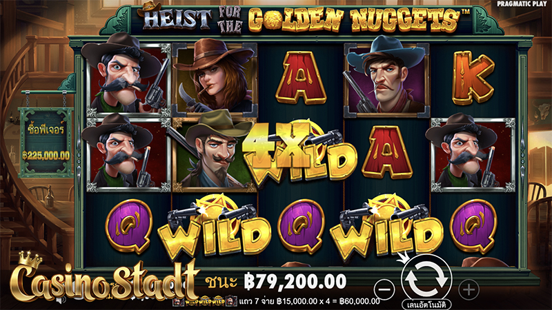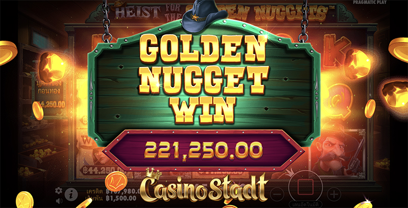 เกมสล็อต Heist for the Golden Nuggets™ ไฮสท์ฟอร์เดอะโกลเด้นนักเก็ตส์ จากสตูดิโอเกม Pragmatic Play ที่แม้ว่าเกมจะมีคำว่านักเก็ตแต่ก็ไม่ได้เกี่ยวข้องกับไก่ทอดแสนอร่อยแต่อย่างใด เพราะนักเก็ตในที่นี้มีความหมายอีกอย่างว่า “ก้อนทอง” กับเกมสล็อตที่มาในธีมคาวบอยปล้นธนาคาร มาช่วยคาวบอยทั้งห้าสะสมมูลค่าของสัญลักษณ์เงินไว้ที่มิเตอร์มูลค่าก้อนทองเพื่อชัยชนะที่ยิ่งใหญ่! และสามารถซื้อฟรีสปินกันได้ง่ายๆเพียงจ่าย 75× เท่าของเดิมพัน!