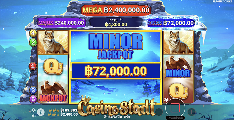 - สัญลักษณ์แจ็กพอตปรากฏพร้อมกับสัญลักษณ์ไมเนอร์ รับรางวัลมูลค่า 30× เท่าของเงินเดิมพัน