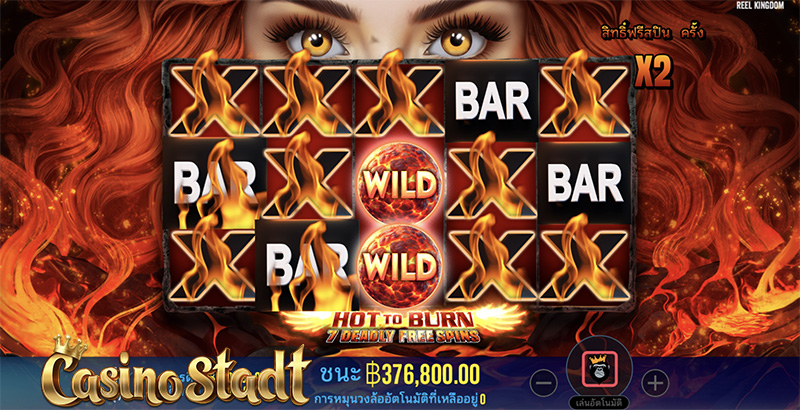 Hot to Burn – 7 Deadly Free Spins ฮอตทูเบิร์น – 7 เดดลี่ฟรีสปิน มาในตารางสล็อตขนาด 5 × 3 และเพย์ไลน์ 10 เส้น