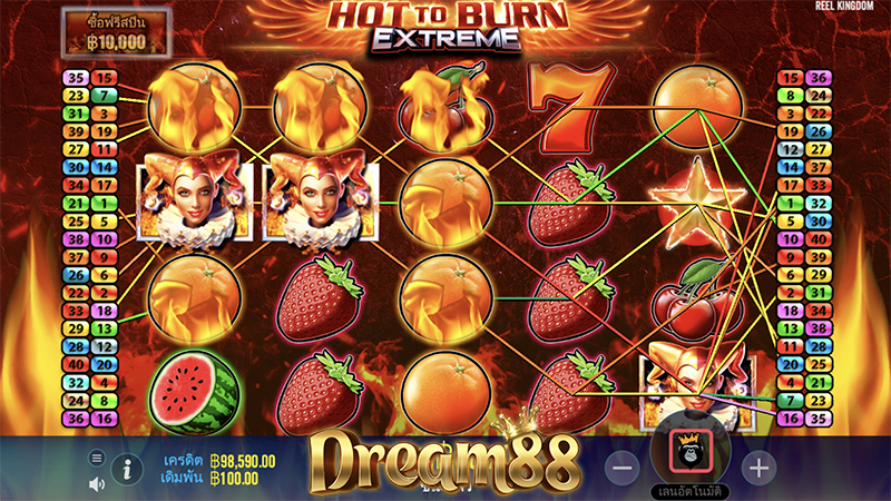 Hot to Burn Extreme ฮอตทูเบิร์น เอกซ์ตรีม มาในตารางสล็อตขนาด 5 × 4 และเพย์ไลน์ 40 เส้น