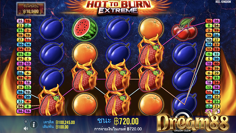 Hot to Burn Extreme ฮอตทูเบิร์น เอกซ์ตรีม เกมสล็อตธีมผลไม้แบบคลาสสิค เกมไตรภาคที่เริ่มเปิดตัวครั้งแรกเมื่อปี 2020 กับชื่อเกม Hot To Burn ที่มีเพียง 5 เพลย์ไลน์ ไร้ซึ่งฟีเจอร์ใดๆ และภาคสอง Hot to Burn Hold & Spin ที่เพิ่มฟีเจอร์โฮลแอนด์สปินเข้ามาเพื่อนำผู้เล่นเข้าสู่รอบหมุนวงล้อลุ้นรางวัล และในภาคนี้ Hot to Burn Extreme ที่ผู้เล่นหลายคนคาดหวังให้มีฟีเจอร์สุดเอกซ์ตรีมตามชื่อ แต่ก็ไม่ เพราะสตูดิโอเกม Pragmatic Play ต้องการรักษาความคลาสสิคของเกมไว้ เพื่อเอาใจแฟนๆที่ชอบเล่นเกมสล็อตแบบคลาสสิค เรียบง่าย แต่พลาดไม่ได้กับฟีเจอร์ซื้อฟรีสปิน