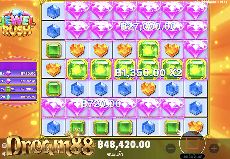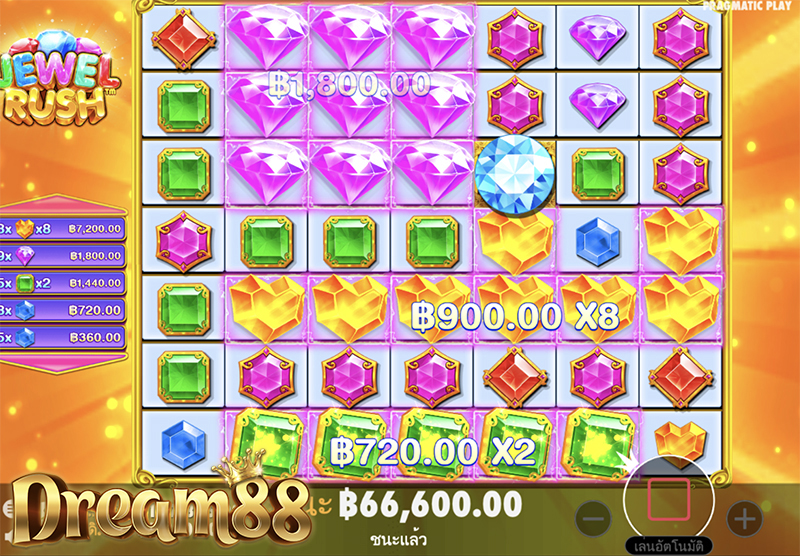 Jewel Rush มีอัตราการจ่ายเงินคืนแก่ผู้เล่น หรือ ค่า RTP อยู่ที่ 96.47% และ ความผันผวนสูง