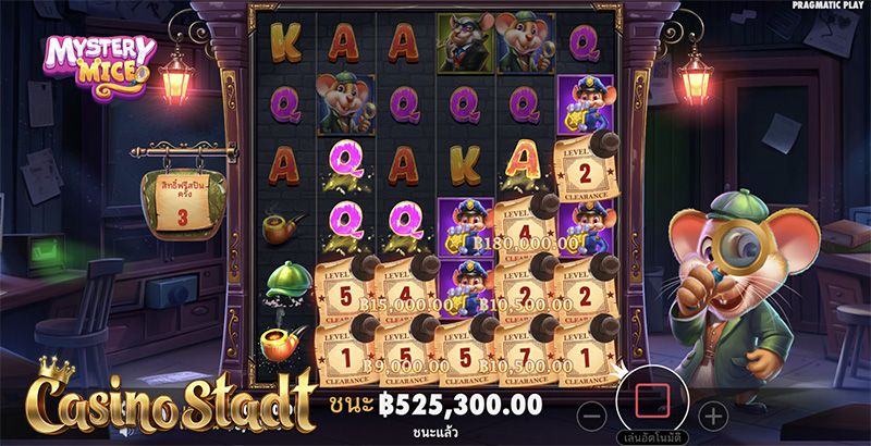 ตามล่าหัวขโมยชีสเพื่อรับรางวัลค่าหัว! ค้นหาเบาะแสไปกับเจ้าหนูยอดนักสืบ! ในเกมสล็อต Mystery Mice มิสเทอรี่ไมซ์ สร้างสรรค์โดยสตูดิโอเกม Pragmatic Play เกมนี้มีการจ่ายเงินรางวัลเพียงได้สัญลักษณ์เหมือนกันเชื่อมต่อกันอย่างน้อย 5 ตัวเท่านั้น! และพิเศษกับสัญลักษณ์พาวเวอร์ไวลด์ที่จะคงอยู่ในเกมผ่านฟีเจอร์ร่วงหล่นจนกว่าเลเวลจะลดเหลือศูนย์! ค้นหาสัญลักษณ์แว่นขยายสามตัวขึ้นไปเพื่อเปิดใช้งานรอบโบนัส!