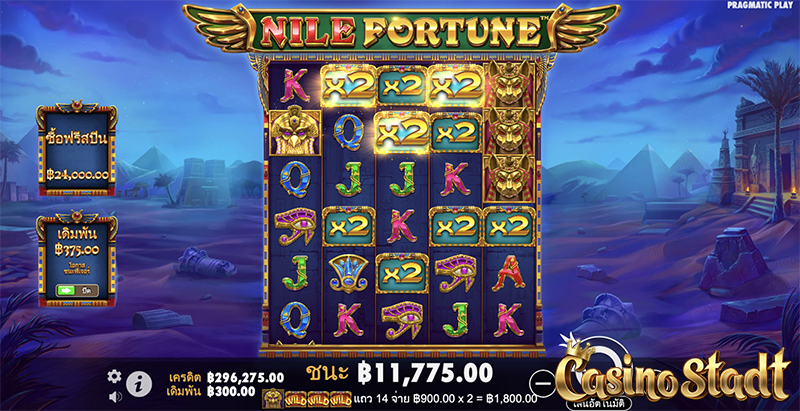 ในเกมสล็อตธีมอียิปต์ Nile Fortune™ ไนล์ฟอร์จูน จากค่าย Pragmatic Play นี้มีกราฟิกและซาวด์เอฟเฟคชวนที่ชวนให้ผู้เล่นหลงใหลไปกับอารยธรรมอียิปต์โบราณ สัญลักษณ์แมวทองคำและเครื่องประดับสีทองสุดขลังมากมายที่จะมาเป็นสัญลักษณ์จ่ายรางวัลในเกมนี้ พบกับตัวปรับแต่งปริศนาที่สามารถกลายเป็นตัวปรับแต่งพิเศษได้ถึง 3 แบบพร้อมฟีเจอร์รีสปิน และพิเศษสุด! สามารถซื้อฟีเจอร์ฟรีสปินได้ในราคาเพียง 80× เท่าของเดิมพันเท่านั้น! สามารถทดลองเล่นเกม Nile Fortune™ ไนล์ฟอร์จูน กันได้ฟรีๆที่นี่หรือสมัครสมาชิกที่ เว็บไซต์คาสิโนออนไลน์ชั้นนำ ของประเทศไทยที่ Casino Stadt เพื่อลุ้นรางวัลแบบจริงๆกันได้เลย!