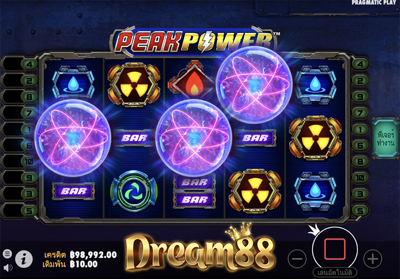 เกม Peak Power มาในตารางสล็อตขนาด 5 x 3 กับเพย์ไลน์ทั้งหมด 10 เส้น