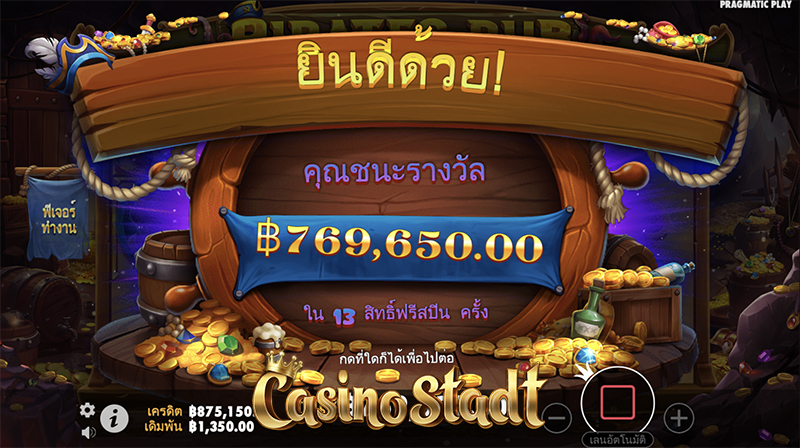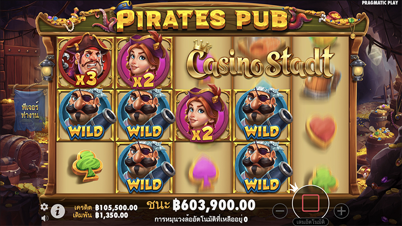 สามารถทดลองเล่นเกมสล็อตธีมโจรสลัดแฟนตาซี Pirates Pub™ ไพเรทส์ผับ ก่อนเดิมพันจริงกันได้เลยที่นี่! หรือไม่รอช้าเข้าไปเดิมพันจริงกันได้เลยที่ เว็บไซต์คาสิโนออนไลน์ชั้นนำ ของประเทศไทย ที่ Casino Stadt คัดสรรมาให้คุณ นอกจากยังมีเกมฮิตอื่นๆอีกเพียบให้คุณได้ร่วมสนุก ไม่ว่าจะเป็นเกมแจ็กพอต เกมยิงปลา เกมบิงโก คาสิโนสด ซิกโบ บาคาร่า รูเล็ต โป๊กเกอร์ แบล็คแจ็ค และอื่นๆอีกมากมาย!