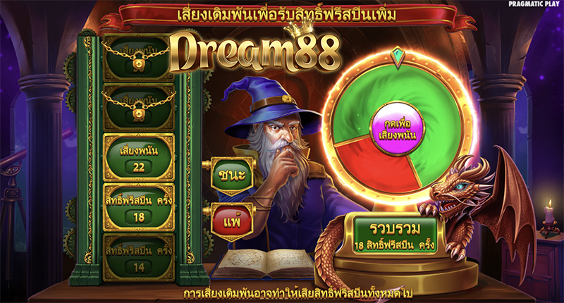 ก่อนเริ่มรอบฟรีสปิน ผู้เล่นสามารถเลือก เสี่ยงเดิมพันเพื่อรับสิทธิ์ฟรีสปินเพิ่มเติม (gambling for more) หรือ เริ่มเล่นฟรีสปินทันที