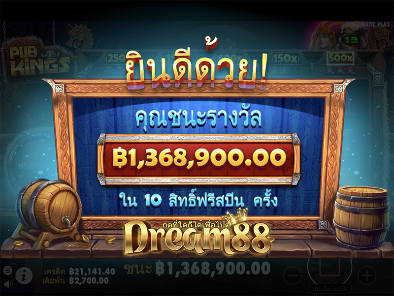 สามารถทดลองเล่นเกมสล็อต Pub Kings™ ผับคิงส์ จากค่าย Pragmatic Play กันได้แล้วที่นี่ นอกจากจะมีฟีเจอร์แจกรางวัลแล้ว ยังให้คุณได้ลุ้นรางวัลสูงสุดถึง x5,000 เท่าของเงินเดิมพัน และยังสามารถ ทดลองเล่นเกมสล็อตค่ายดัง อื่นๆ หรือเดิมพันจริงกันได้เลยในเกมแจ็กพอต เกมสล็อต ยิงปลา บิงโก คาสิโนสด บาคาร่า โป๊กเกอร์ ฯลฯ บน เว็บไซต์คาสิโนออนไลน์ชั้นนำ ที่ dream88 คัดสรรมาให้คุณ