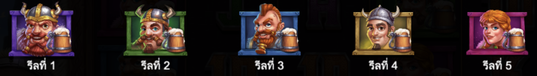 - สัญลักษณ์จ่ายสูง ได้แก่ ชาวไวกิ้งทั้ง 5