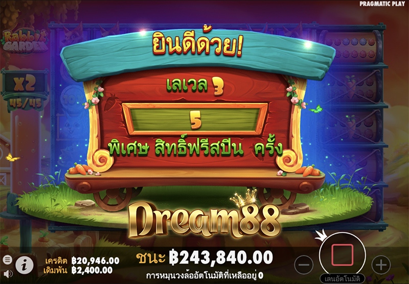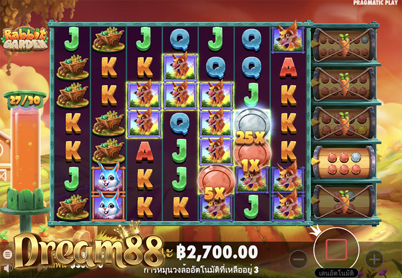 แฟนๆเกมทำฟาร์มต้องไม่พลาด กับเกม Rabbit Garden แรบบิทการ์เด้น จากสตูดิโอเกม Pragmatic Play ที่มีวิธีการจ่ายรางวัลแบบคลัสเตอร์ที่ผู้เล่นหลายคนชื่นชอบ กับ โอกาสในการชนะสูงสุดถึง 10,000x เท่าของเงินเดิมพัน ดนตรีประกอบในเกมที่จะทำให้ผู้เล่นรู้สึกเพลิดเพลินไปกับธรรมชาติในฟาร์มชนบท ตัวละครหลักเป็นเจ้ากระต่ายน้อยที่คอยจ้องแอบกินแครอททุกครั้งที่สบโอกาส เกมนี้มีฟีเจอร์ที่น่าสนใจคือ ฟีเจอร์เก็บเหรียญ ที่มีตัวคูณสูงสุด 1000x เท่า