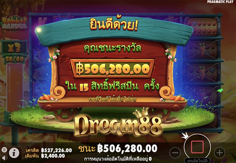 Rabbit Garden มีอัตราการจ่ายเงินคืนแก่ผู้เล่น หรือ ค่า RTP อยู่ที่ 96.05% ความผันผวนสูง และผู้โชคดีสามารถ รับเงินรางวัลสูงถึง 10,000 เท่า ของเงินเดิมพัน