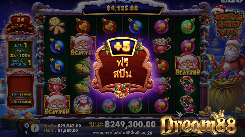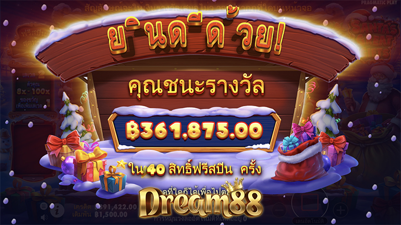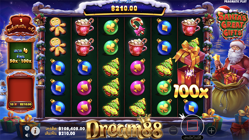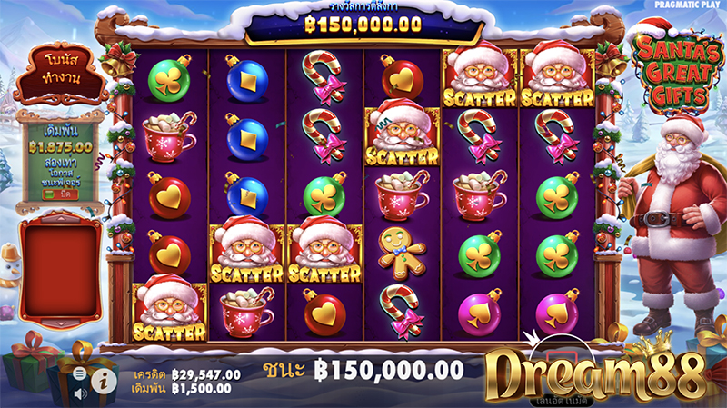 ต้อนรับเทศกาลแห่งความสุข ลุ้นรับของขวัญจากซานต้าเป็นตัวคูณสูงสุดถึง 100x ไปกับเกมสล็อต Santa’s Great Gifts™ ซานต้าเกรทกิ๊ฟ จากค่าย Pragmatic Play กันได้แล้วที่นี่ และสามารถ ทดลองเล่นเกมสล็อตค่ายดัง อื่นๆกันได้ฟรีๆ หรือไม่รอช้าเดิมพันจริงกันได้เลยที่ เว็บไซต์คาสิโนออนไลน์ชั้นนำ ที่ dream88 คัดสรรมาให้คุณ ไม่ว่าจะเป็นเกมแจ็กพอต เกมยิงปลา เกมบิงโก คาสิโนสด ซิกโบ บาคาร่า รูเล็ต โป๊กเกอร์ แบล็คแจ็ค และอื่นๆอีกเพียบ!!