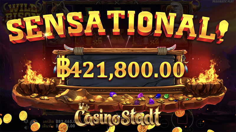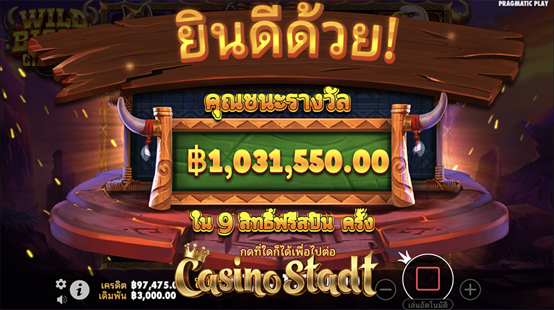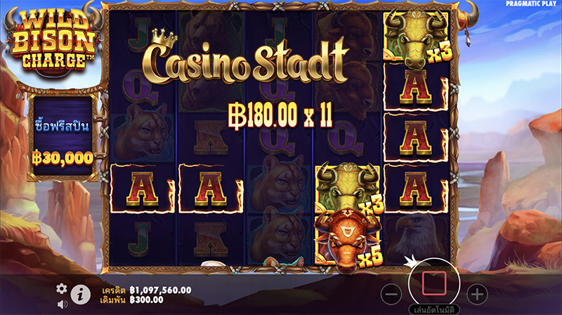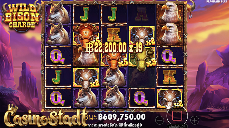 ทดลองเล่นเกมสล็อตธีมสัตว์ป่า Wild Bison Charge™ ไวลด์ไบซันชาร์จ ที่มีการจ่ายรางวัลแบบกระจาย หรือ Scatter Pays ที่ทุกคนรอคอยกันได้แล้วที่นี่ หรือไม่รอช้าเข้าไปเดิมพันจริงกันได้เลยที่ เว็บไซต์คาสิโนออนไลน์ชั้นนำ ของประเทศไทย ที่ Casino Stadt คัดสรรมาให้คุณ นอกจากยังมีเกมฮิตอื่นๆอีกเพียบให้คุณได้ร่วมสนุก ไม่ว่าจะเป็นเกมแจ็กพอต เกมยิงปลา เกมบิงโก คาสิโนสด ซิกโบ บาคาร่า รูเล็ต โป๊กเกอร์ แบล็คแจ็ค และอื่นๆอีกมากมาย!