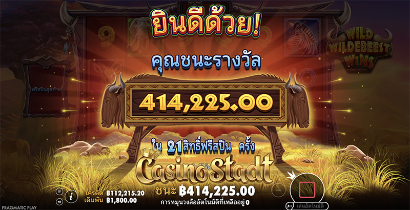 Wild Wildebeest Wins ไวลด์วิลเดอบีสต์วินส์ มีอัตราการจ่ายเงินคืนแก่ผู้เล่น หรือ ค่า RTP อยู่ที่ 96.51% และความผันผวนสูง ผู้โชคดีอาจได้รับรางวัลสูงสุด 10,000 เท่าของเงินเดิมพัน