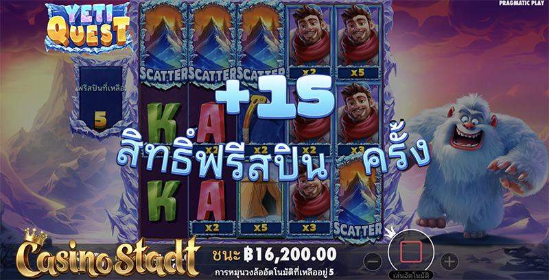 ท่ามกลางเทือกเขาที่ปกคลุมไปด้วยหิมะ นักสำรวจผู้กล้าหาญของเราออกตามล่าเยติ สัตว์ในตำนานที่ว่ากันว่าเป็นสิ่งมีชีวิตครึ่งมนุษย์ครึ่งลิงที่อาศัยอยู่ในความหนาวเหน็บ พบกับเกมสล็อต Yeti Quest เยติเควส จากค่าย Pragmatic Play เกมสล็อตขนาด 5 × 3 เล่นง่าย จ่ายแรง! พร้อมลุ้นเงินรางวัลสูงสุดถึง ×5,000 เท่าของเงินเดิมพัน กับสัญลักษณ์จ่ายรางวัลพิเศษสี่แบบที่มาพร้อมตัวคูณ และรอบฟรีสปินที่สามารถซื้อได้ในราคาเพียง 100× เท่านั้น!