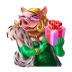 • สุภาพสตรีหมู – มีตัวคูณเริ่มต้นที่ × 1 เมื่อปรากฏจะเก็บมูลค่าของสัญลักษณ์เงิน สัญลักษณ์กระเป๋าสตางค์ และสัญลักษณ์ถุงเงินทั้งหมดในรีลเพื่อนำมาคูณกับตัวคูณ และมอบของขวัญทิ้งไว้บนตำแหน่งที่ปรากฏ หากสัญลักษณ์สุภาพสตรีหมูตัวใหม่ปรากฏ ตัวคูณจะเพิ่มขึ้นครั้งละ +1