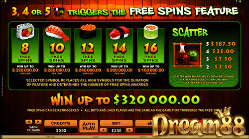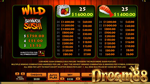 So Much Sushi Slot เป็นเกมสล็อตที่มีความเป็นญี่ปุ่นเป็นหลัก หลอมรวมด้วยจิตวิญญาณของชาวตะวันออก แต่กลับได้รับความนิยมเป็นอย่างมากในตลาดสล็อตฝั่งตะวันตก Microgaming ผู้พัฒนาเกมนี้มีความภาคภูมิใจเป็นอย่างมาก ที่ได้มีเกมนี้อยู่ในแฟ้มสะสมผลงานของของทางค่าย และอย่าลืมว่าเราสามารถชนะแจ็คพ็อตขนาดยักษ์ได้ถึง 320,000 เหรียญ coins ถ้าเราสามารถได้หน้าจอที่ทุกคนใฝ่ฝันในทุก ๆ ครั้งที่เราเล่น