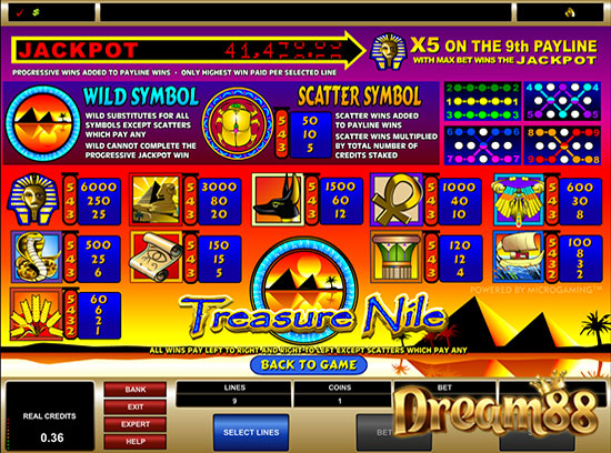 เกมสล็อตออนไลน์ ที่ดีอีกเกมนึงของ Microgaming ก็คือ Treasure Nile Slot ครับ เกมนี้ฟังชื่อก็น่าจะพอเดาได้ว่าเป็นเกมสล็อตที่มาแนวอียิปต์โบราณ ใครที่สนใจศิลปะ เกม หรือหนังแนวนี้ก็น่าจะชอบกันครับ ได้นั่งดูรูปสัญลักษณ์เพลินๆแล้วยังได้เงินด้วย