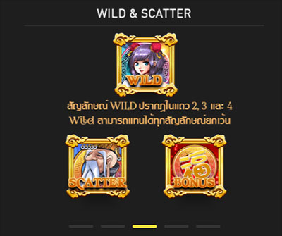 อีกสัญลักษณ์หนึ่งที่มักจะมาเป็นแพคคู่เสมอ คือ Scatter ที่เป็นรูป เทพแห่งความโชคดี มีหน้าที่มอบฟรีสปิน 10 ครั้งให้กับผู้เล่น เมื่อได้ Scatter ตั้งแต่ 3 อันขึ้นไปที่ตำแหน่งใดก็ได้บนหน้าจอ และเมื่อเข้าสู่โหมดการเล่นเกมฟรี ที่มุมขวาบนของหน้าจอจะทำการสุ่มตัวคูณเงินรางวัลสูงสุดถึง 8 เท่า! ยกตัวอย่างเช่น ถ้าในรอบนั้นได้เงินรางวัล 100 บาท และสุ่มได้ตัวคูณ 8x ก็จะเท่ากับว่าในรอบนั้นได้เงินรางวัล 800 บาทค่ะ