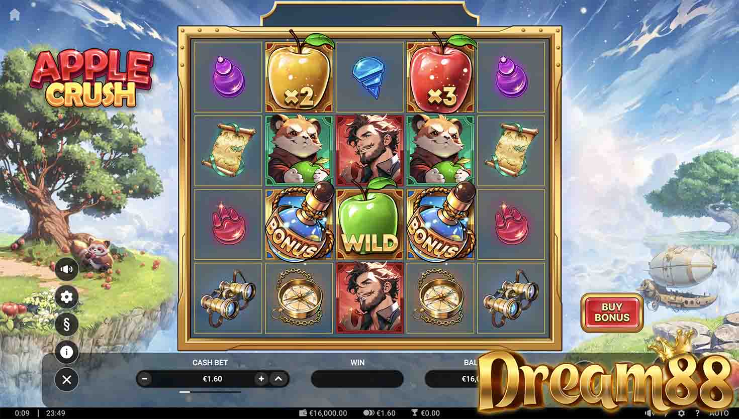 The Free Spins round can be triggered by landing 3 Scatters or through the Buy option to get 8 free spins and lucrative multipliers. We suggest you give Apple Crush a few spins if you love dreamy fantasy themes with stunning graphics. Test your luck in the valley of clouds to see if you win the $600 jackpot!