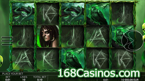 The new 5 reel and 10 pay line Voodoo online slot game comes with a voodoo theme and captivating sounds, a depressing atmosphere, and a sorcerer character with a witch that create the perfect illusion of the deep forest where natural spirits reign.